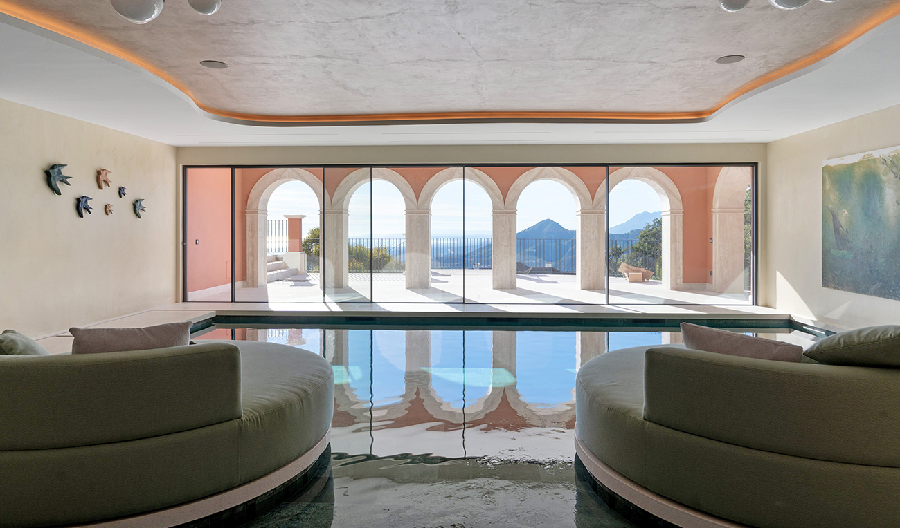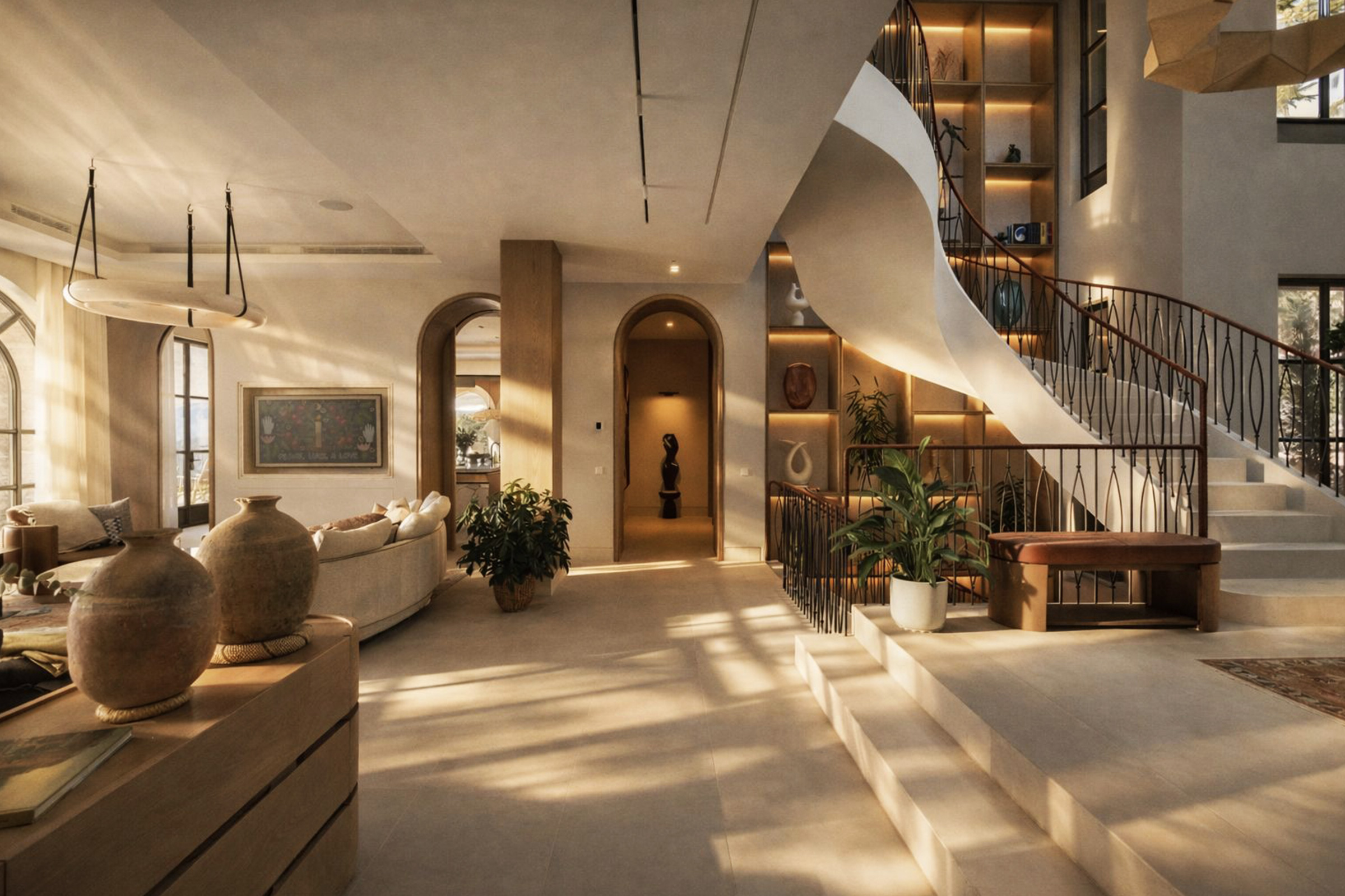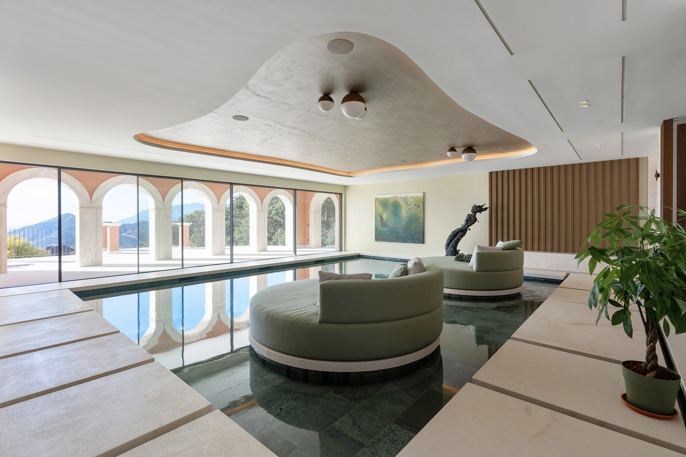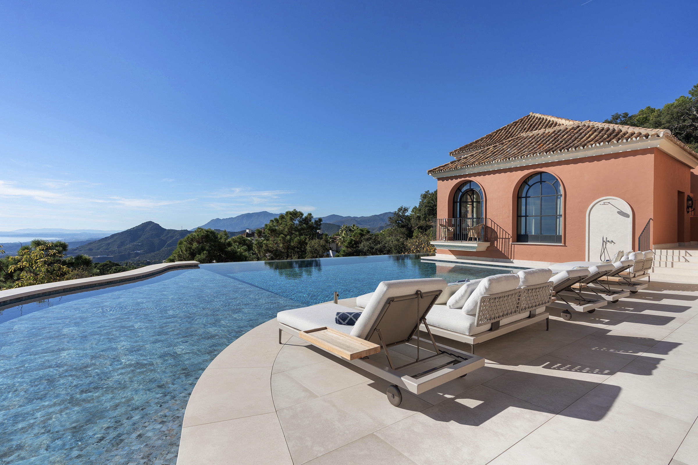 In this ideal setting you can find this fabulous signature residence, consisting of a main house and separate guest and staff accommodations.The main villa consists of two independent wings joined by a central part and is distributed over two floors plus a basement.The ground floor comprises of a large entrance hall, a spacious double height living / dining room, a fully equipped kitchen with a breakfast area with a fireplace, a library, a living room with a fireplace and a guest toilet.The upper floor is fully occupied by the master suite, with two bathrooms, dressing rooms and own living rooms with fireplaces.The basement consists of a cinema room, wine cellar, games room, two bedrooms with en-suite bathrooms and lounge, gym, heated indoor pool, Turkish bath, shower, toilet and massage room.In addition, here we will find three guest bedrooms and an apartment for the service staff with two more bedrooms, shower, kitchenette and living room.